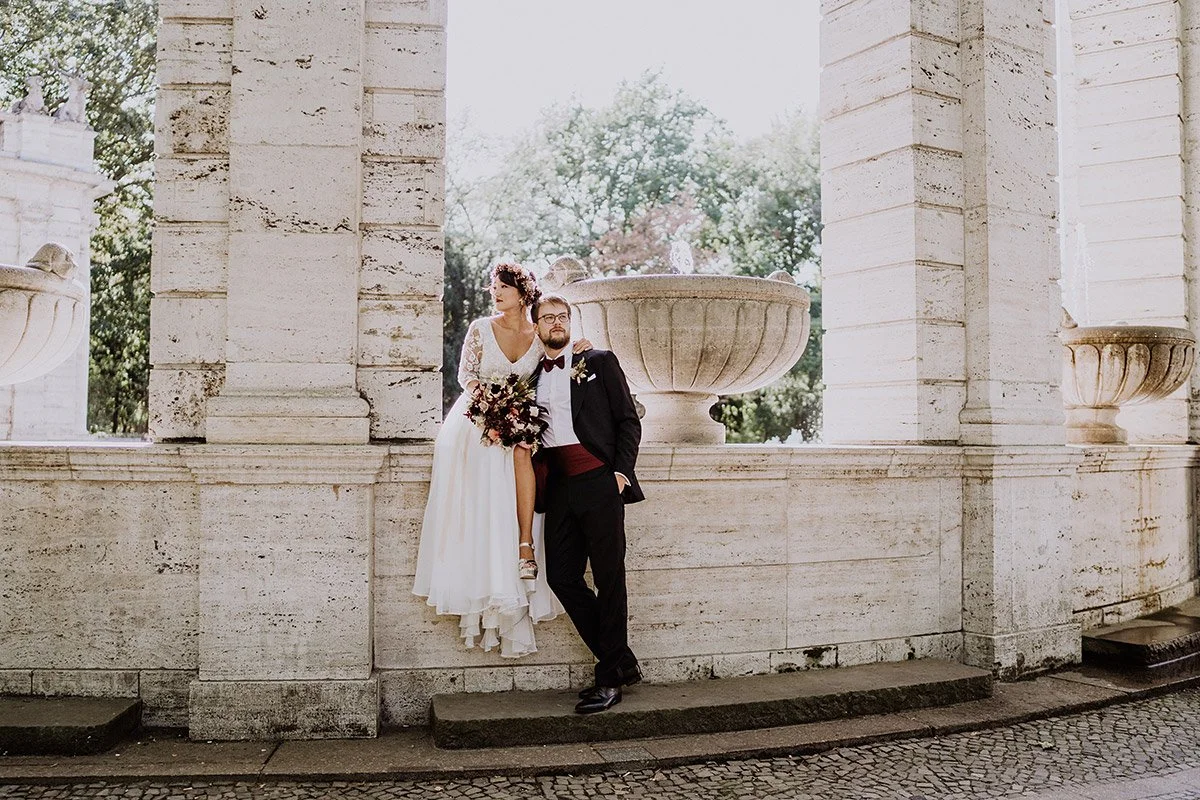 Jacki und Max, deren gemeinsame Geschichte in ihrer Schulzeit begann, feierten ihre Liebe mit einer wunderschönen Sommerhochzeit. Der Tag begann mit der standesamtlichen Trauung in Berlin. Jacki trug ein schlichtes, elegantes Brautkleid mit Perlen-Kopfschmuck. Nach ersten Paarfotos am Standesamt ging es mit der engsten Familie nach Hause zum Getting Ready für die große Feier im James June.